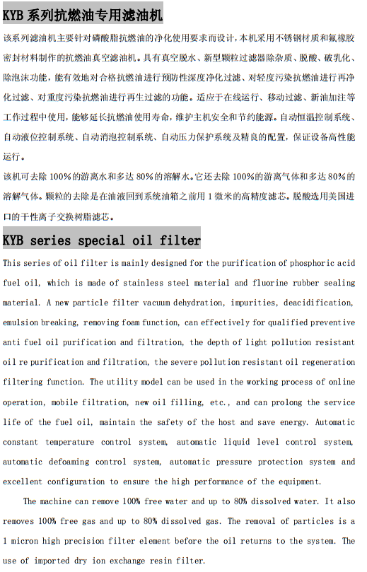 KYB系列抗燃油專用濾油機