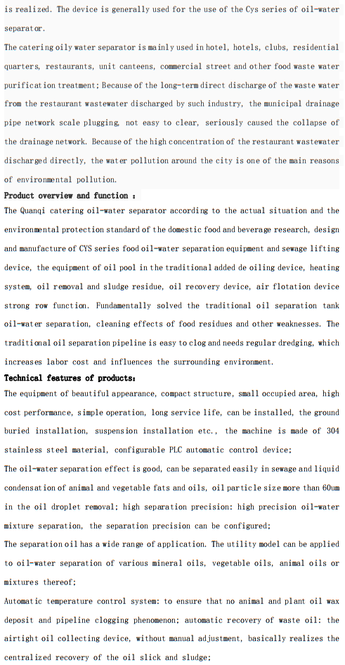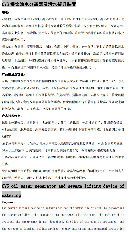 CYS餐飲油水分離器及污水提升裝置